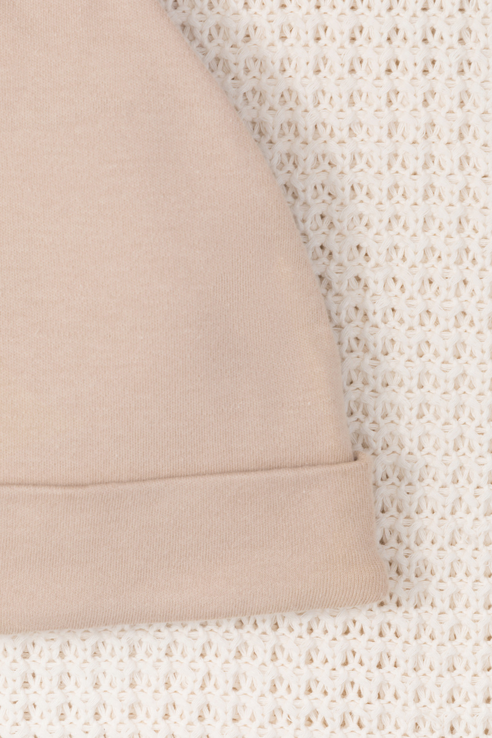 Шапка для новорожденных из мягкого, эластичного трикотажа, произведенного из натурального хлопка. Все трикотажные полотна производятся в соответсвии с нормами Швейцарского сертификата ЭкоТекс.