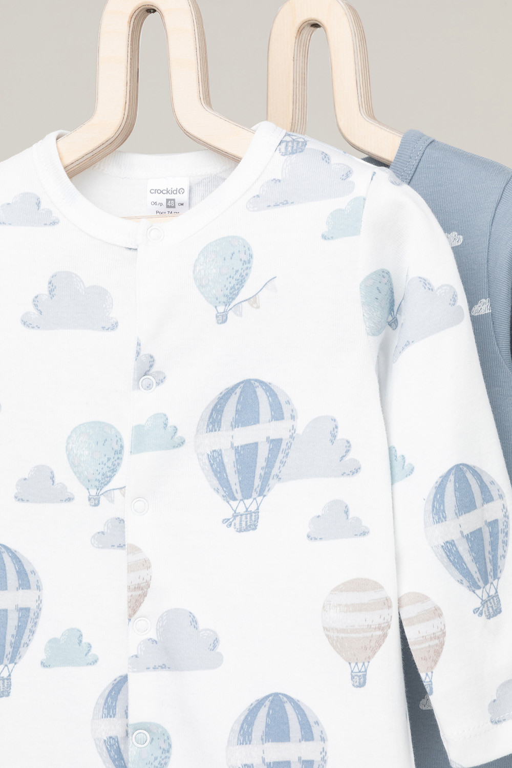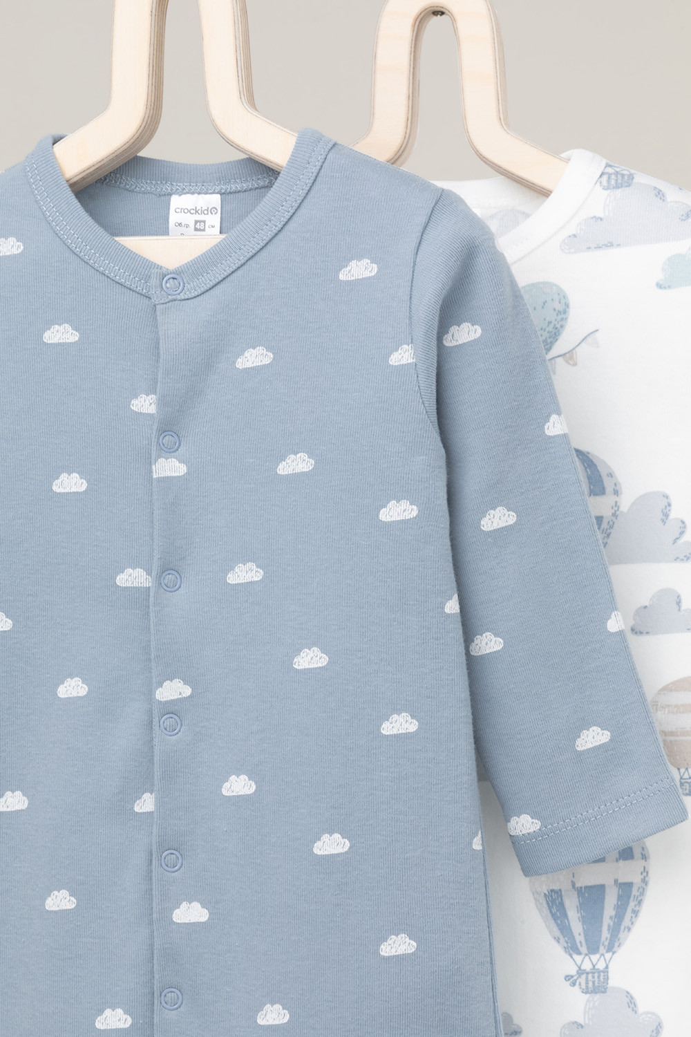 Комбинезоны для новорождённых из мягкого эластичного трикотажа, произведённого из натурального хлопка. В упаковке 2 штуки. Застёгиваются спереди на кнопки. В размере 56 на рукавах предусмотрены антицарапки, швы выполнены наружу. Оригинальная набивка выполнена из стойких гипоаллергенных текстильных красителей. Все трикотажные полотна производятся в соответствии с нормами Швейцарского сертификата ЭкоТекс.