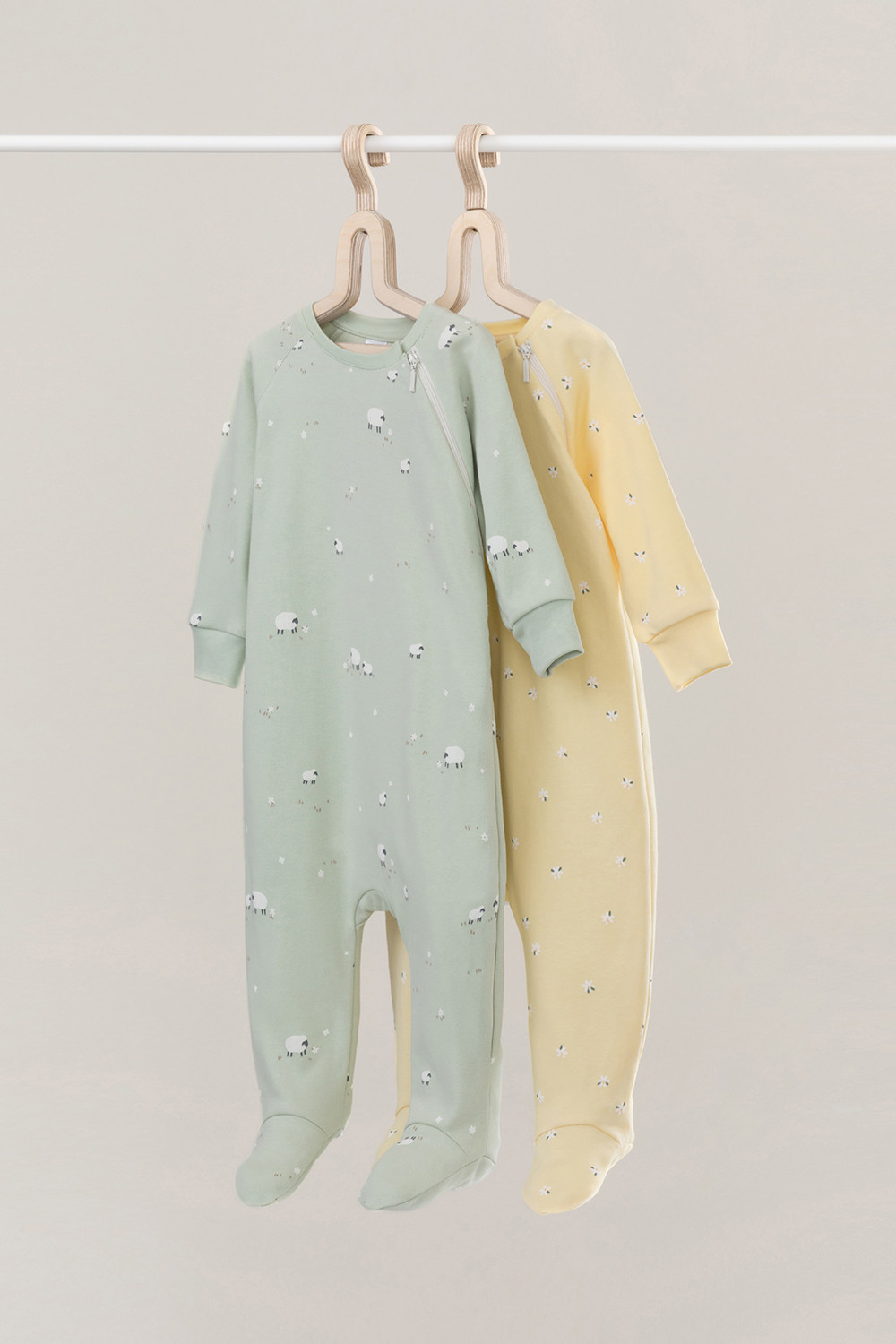 Комбинезоны для новорождённых из мягкого эластичного трикотажа интерлок, произведённого из натурального хлопка. В упаковке 2 штуки. Застёгиваются сбоку на молнию и на кнопку. Длинные рукава-реглан оканчиваются манжетами. Оригинальная набивка выполнена из стойких гипоаллергенных текстильных красителей. Все трикотажные полотна производятся в соответствии с нормами Швейцарского сертификата ЭкоТекс.