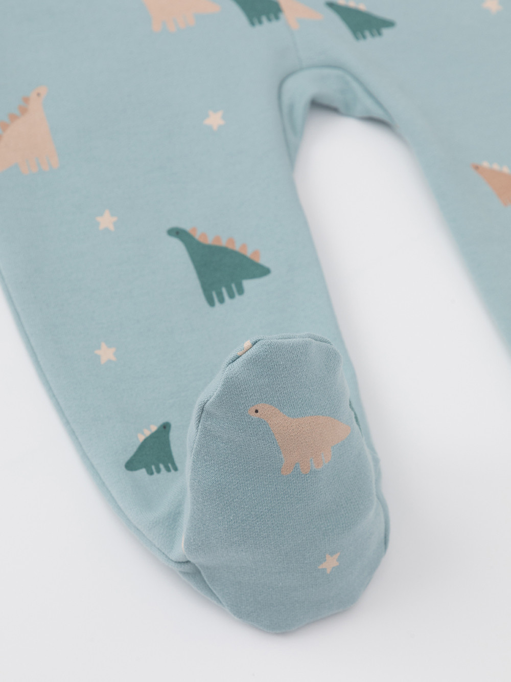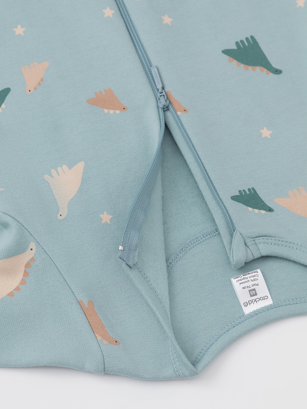 Комбинезон для новорождённых из тонкого футера с начёсом, произведённого из натурального хлопка. Застёгиваются спереди на молнию с мягкой защитой шеи и подбородка. Оригинальная набивка выполнена из стойких гипоаллергенных текстильных красителей. Все трикотажные полотна производятся в соответствии с нормами швейцарского сертификата ЭкоТекс.