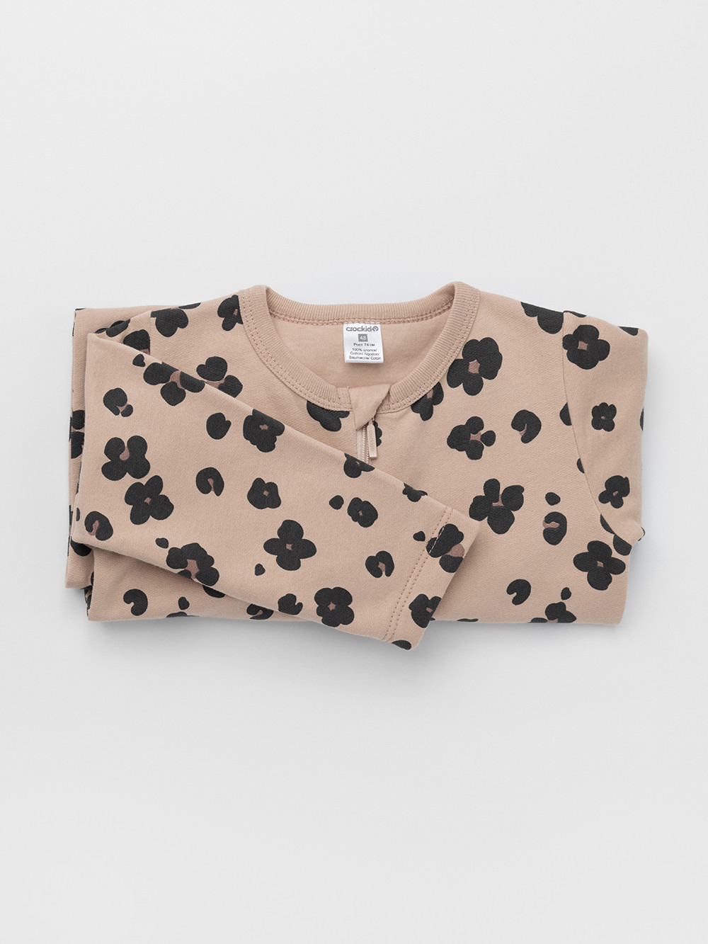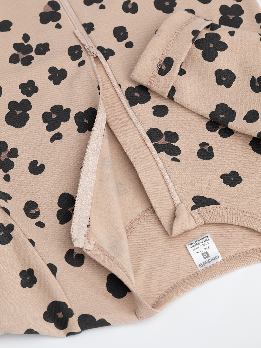 Комбинезон для новорождённых из тонкого футера с начёсом, произведённого из натурального хлопка. Застёгиваются спереди на молнию с мягкой защитой шеи и подбородка. Оригинальная набивка выполнена из стойких гипоаллергенных текстильных красителей. Все трикотажные полотна производятся в соответствии с нормами швейцарского сертификата ЭкоТекс.