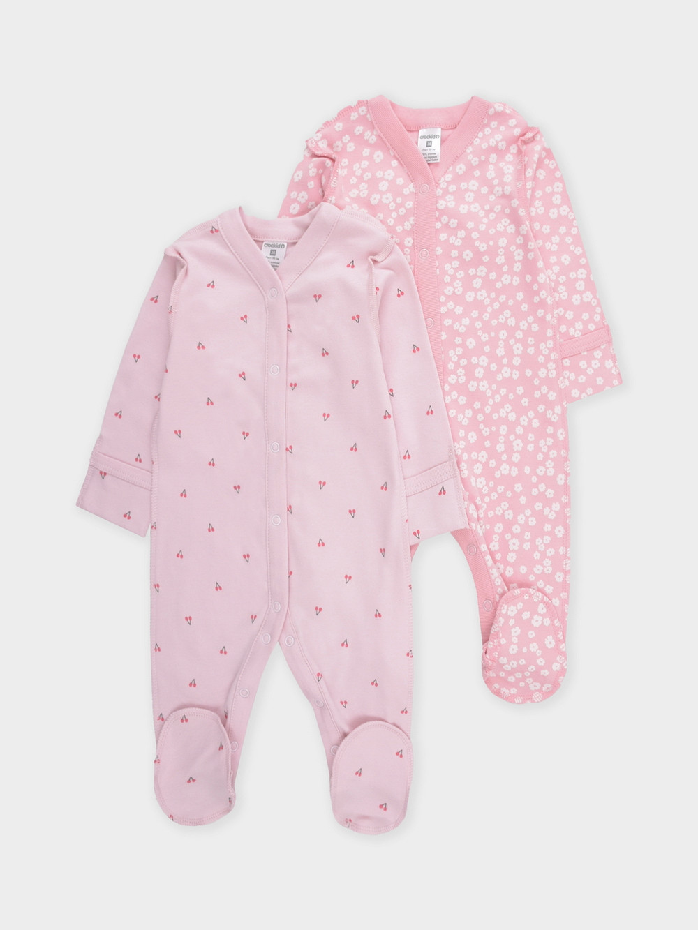 Комбинезоны для новорождённых из мягкого эластичного трикотажа интерлок, произведённого из натурального хлопка. В упаковке 2 штуки. Застёгиваются спереди на кнопки. В размере 56 на рукавах предусмотрены антицарапки, швы выполнены наружу. Оригинальная набивка выполнена из стойких гипоаллергенных текстильных красителей. Все трикотажные полотна производятся в соответствии с нормами швейцарского сертификата ЭкоТекс.