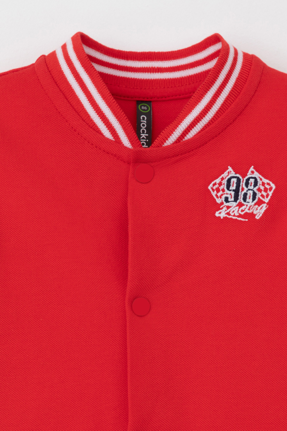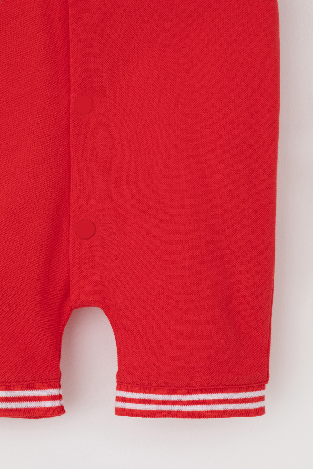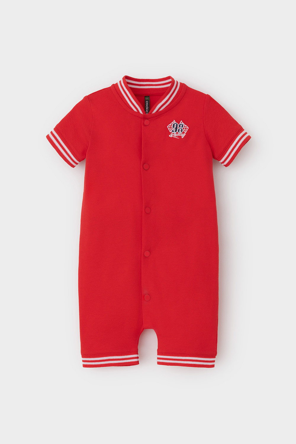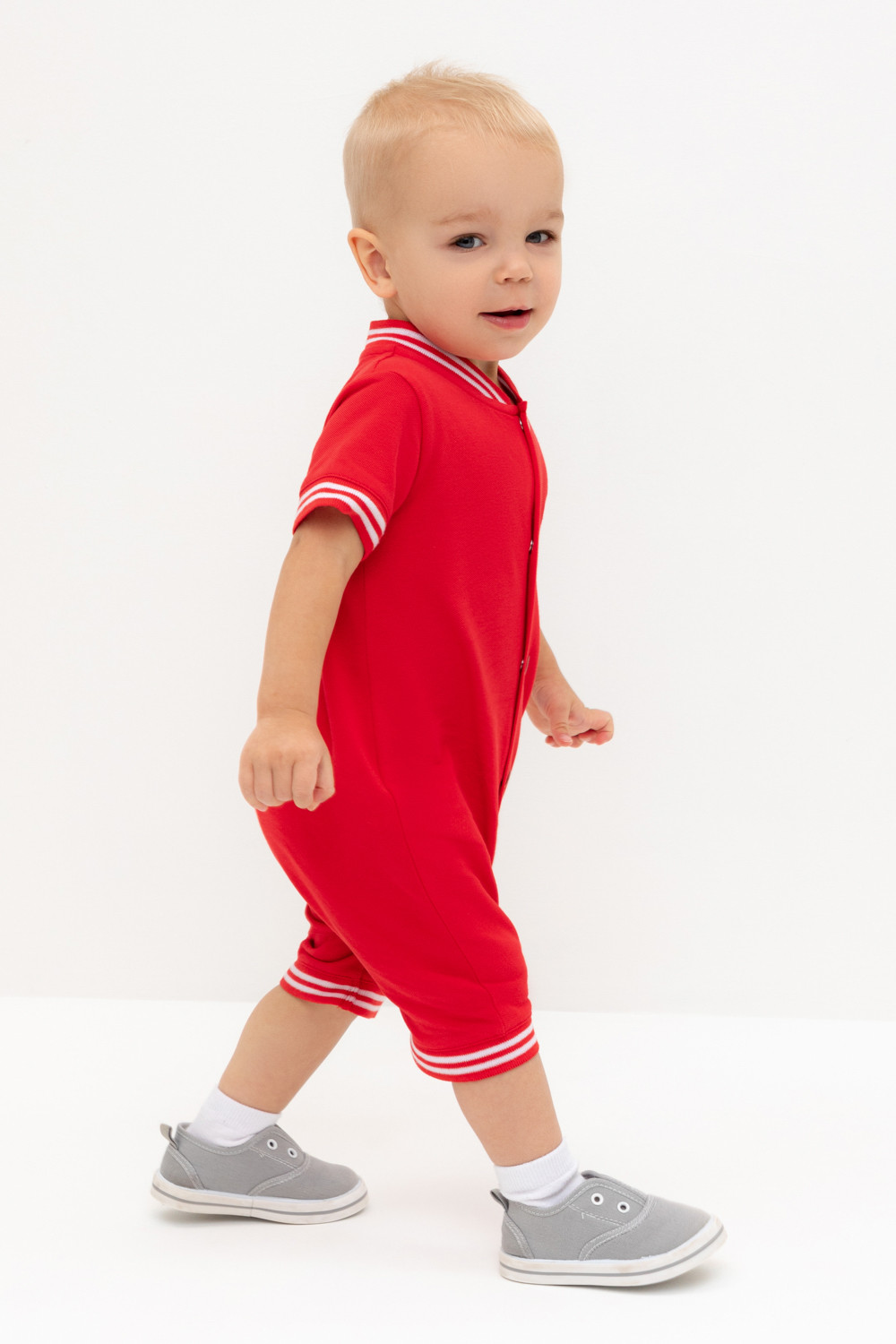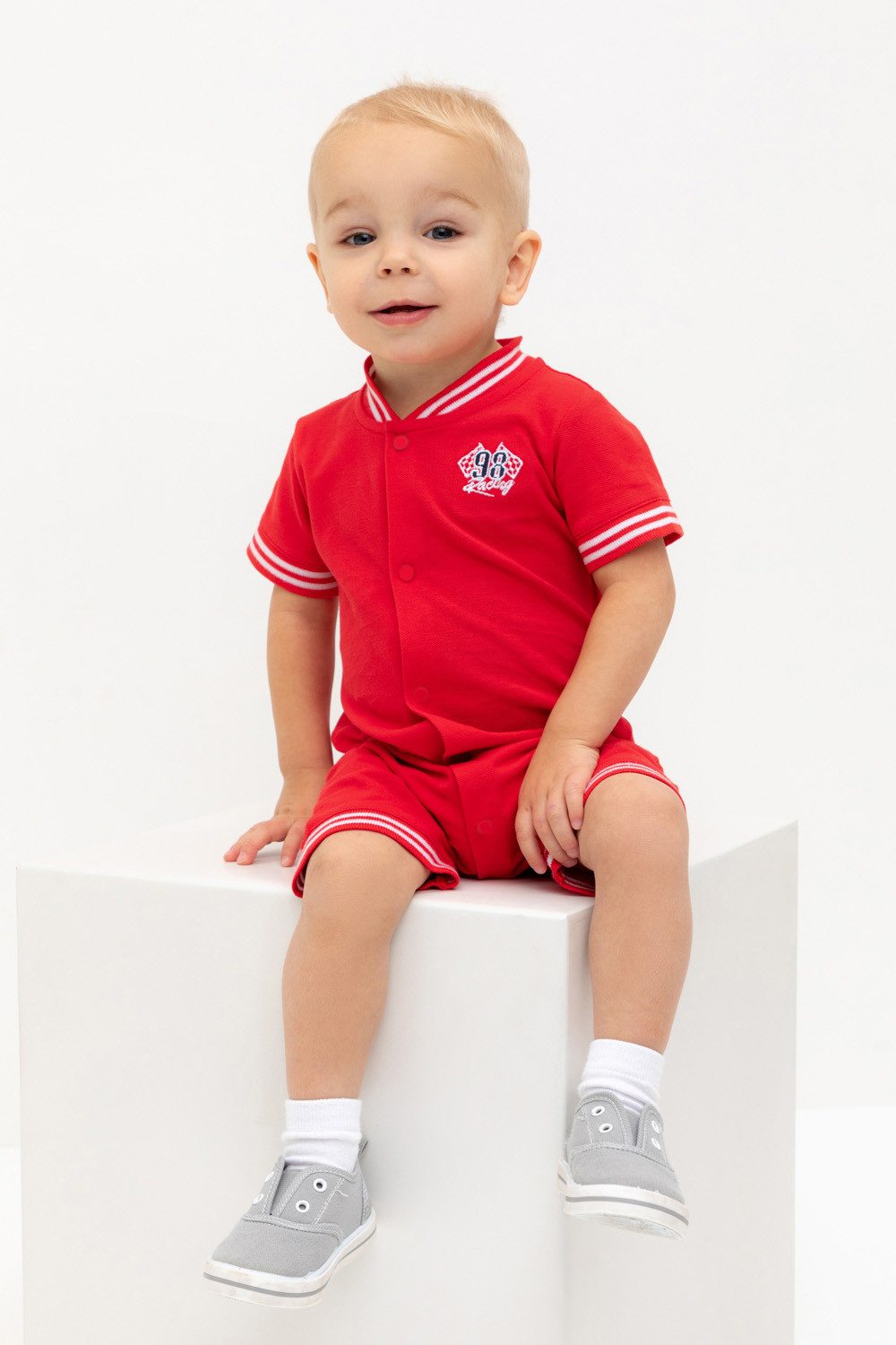 Легкий трикотажный песочник для мальчика из высококачественного хлопка. Застёгивается спереди на кнопки. Украшен вышивкой на груди. Изделие сохраняет цвет и форму после многократных стирок.