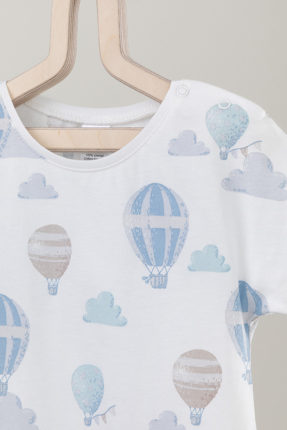Лёгкий трикотажный песочник из высококачественного хлопка для мальчика. Застёгивается на кнопки на плече и по низу изделия. Оригинальная набивка выполнена из стойких текстильных гипоаллергенных красителей. Изделие сохраняет цвет и форму после многократных стирок.