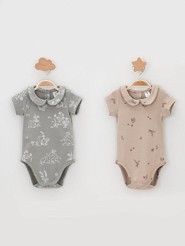 Боди для новорождённых из мягкого эластичного трикотажа, произведённого из натурального хлопка. В упаковке 2 шт. Застёгиваются на кнопки по низу изделий и на спинке. Оригинальная набивка выполнена из стойких гипоаллергенных текстильных красителей. Все трикотажные полотна производятся в соответствии с нормами швейцарского сертификата ЭкоТекс.