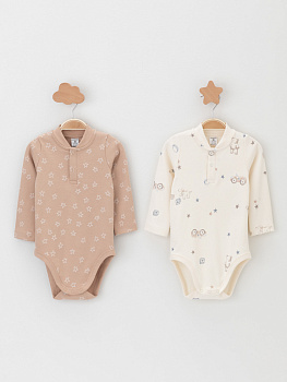 Боди для новорождённых из мягкого эластичного трикотажа, произведённого из натурального хлопка. В упаковке 2 штуки. Застёгиваются на кнопки спереди и по низу изделий. Оригинальная набивка выполнена из стойких гипоаллергенных текстильных красителей. Все трикотажные полотна производятся в соответствии с нормами швейцарского сертификата ЭкоТекс.
