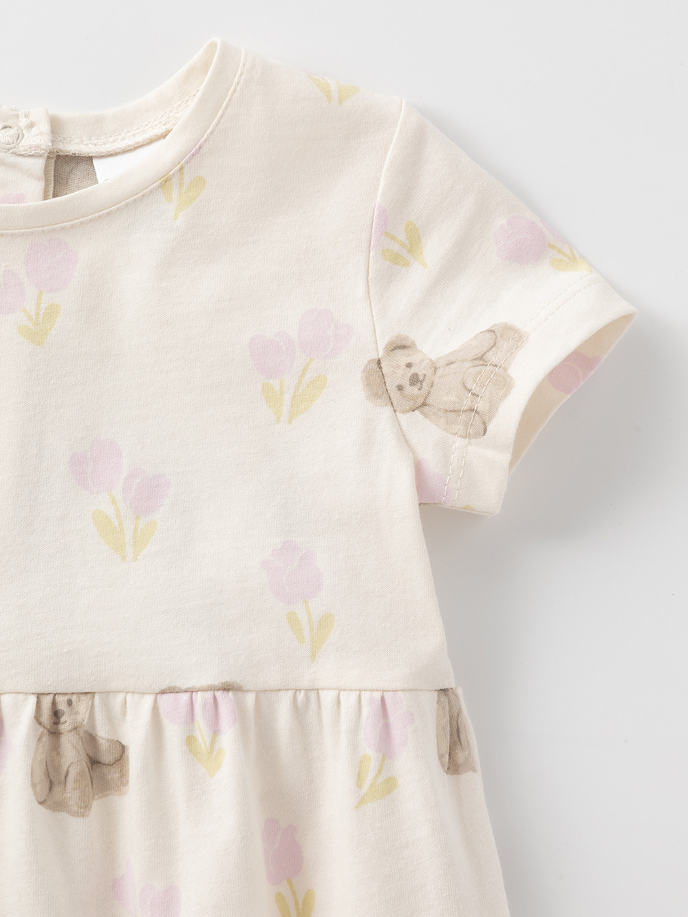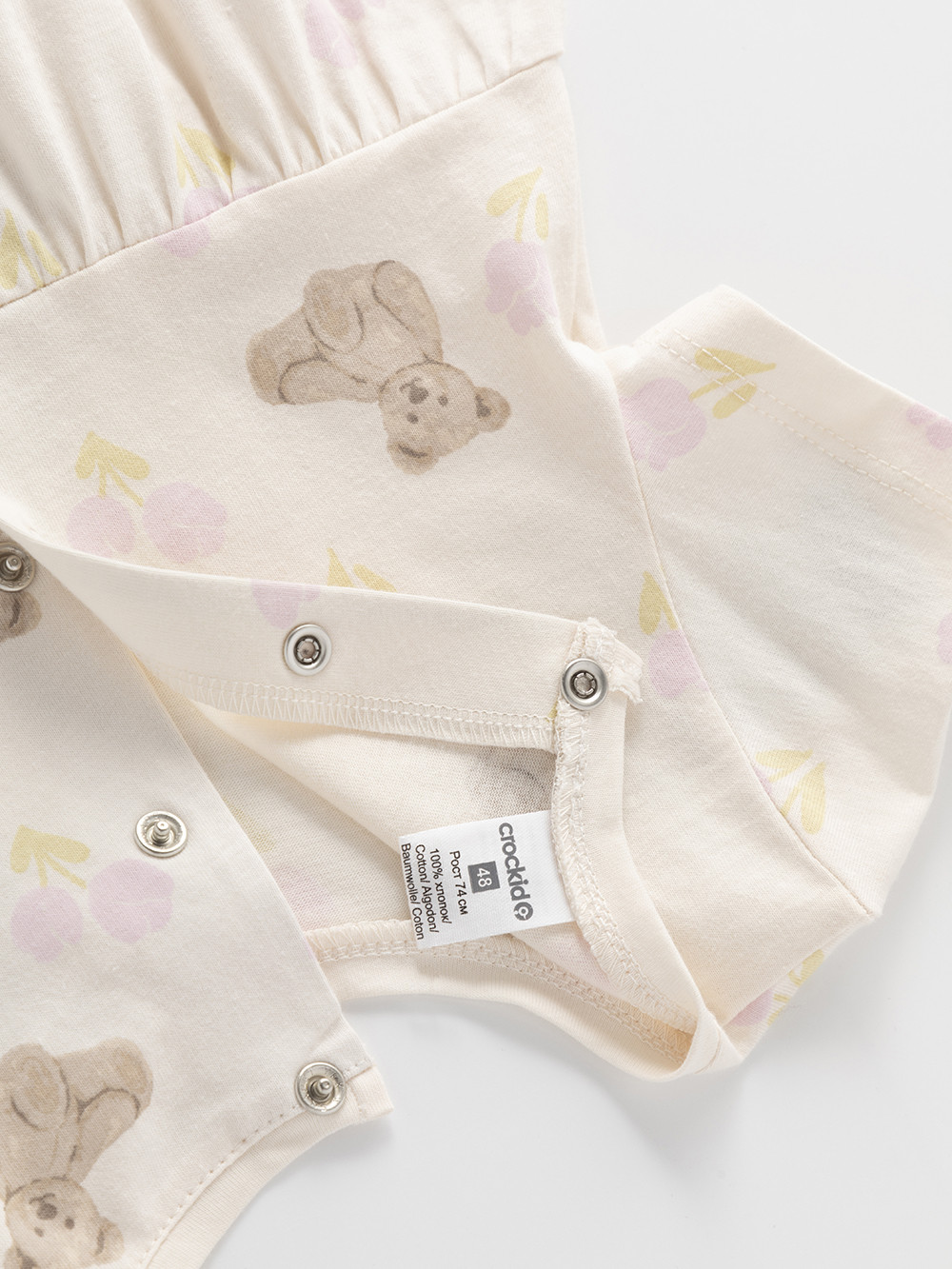 Лёгкий трикотажный песочник для девочки из гладкого трикотажа супрем. В составе 100% натуральный хлопок высокого качества. Удобные застёжки на кнопки на спинке и по низу изделия. Оригинальная набивка выполнена из стойких текстильных гипоаллергенных красителей. Изделие сохраняет цвет и форму после многократных стирок.