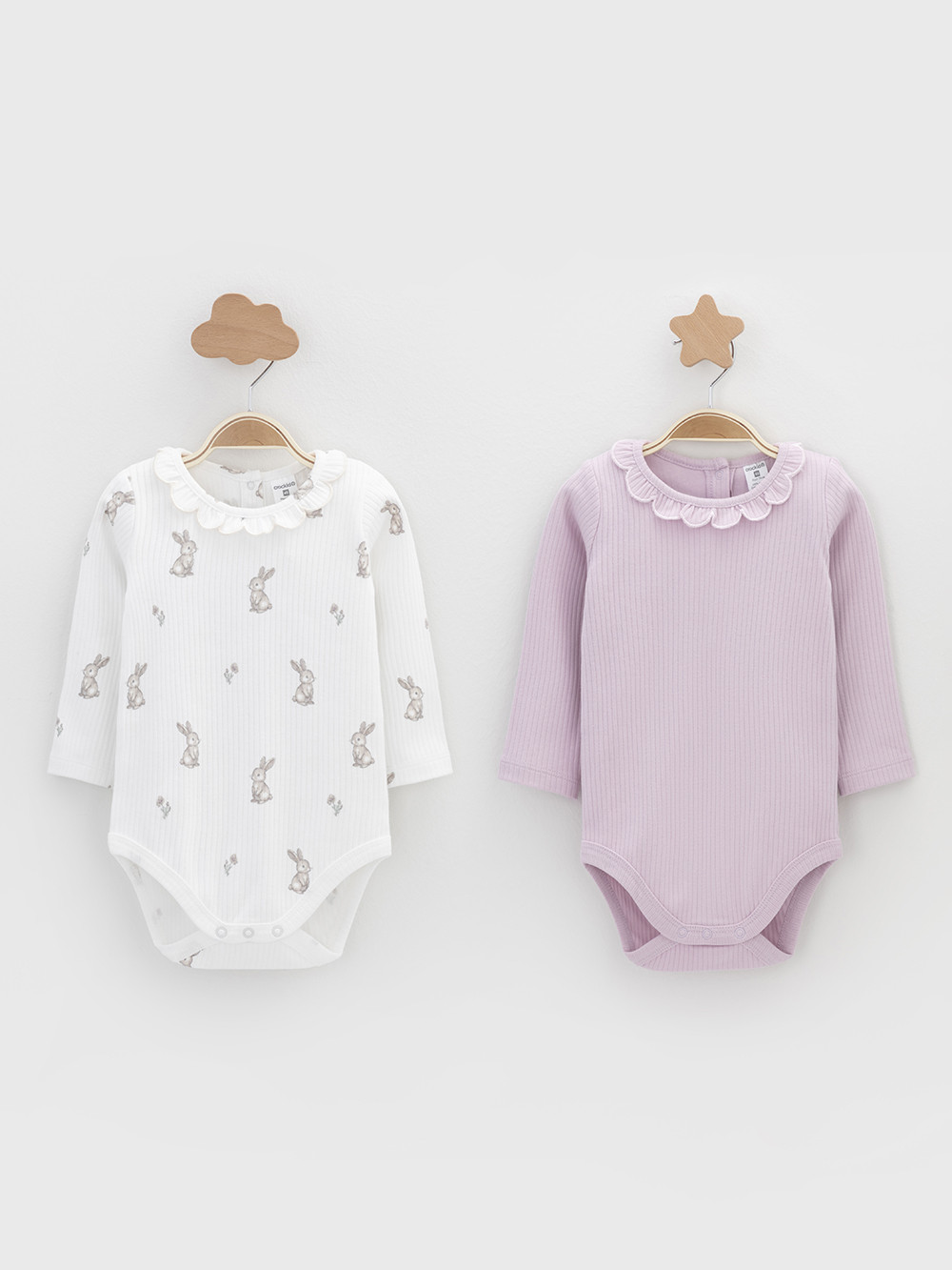 Боди для новорождённых из мягкого эластичного трикотажа, произведённого из натурального хлопка. В упаковке 2 штуки. Застёгиваются на кнопки на спинке и по низу изделий. Все трикотажные полотна производятся в соответствии с нормами швейцарского сертификата ЭкоТекс.