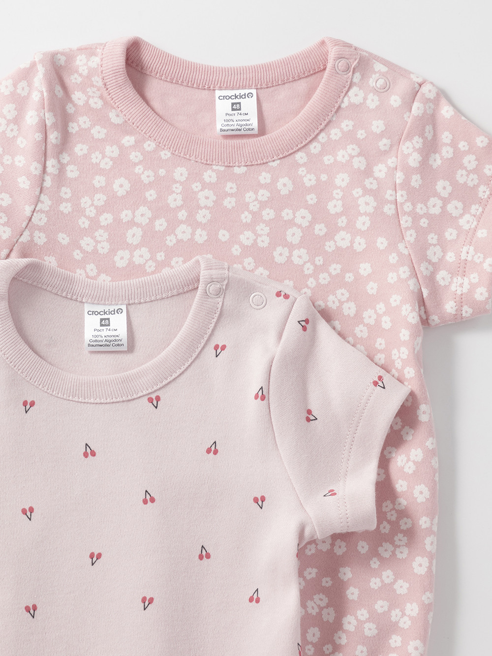 Боди для новорождённых из мягкого эластичного трикотажа, произведённого из натурального хлопка. В упаковке 2 штуки. Застёгиваются на кнопки на плече и по низу изделий. Оригинальная набивка выполнена из стойких гипоаллергенных текстильных красителей. Все трикотажные полотна производятся в соответствии с нормами швейцарского сертификата ЭкоТекс.