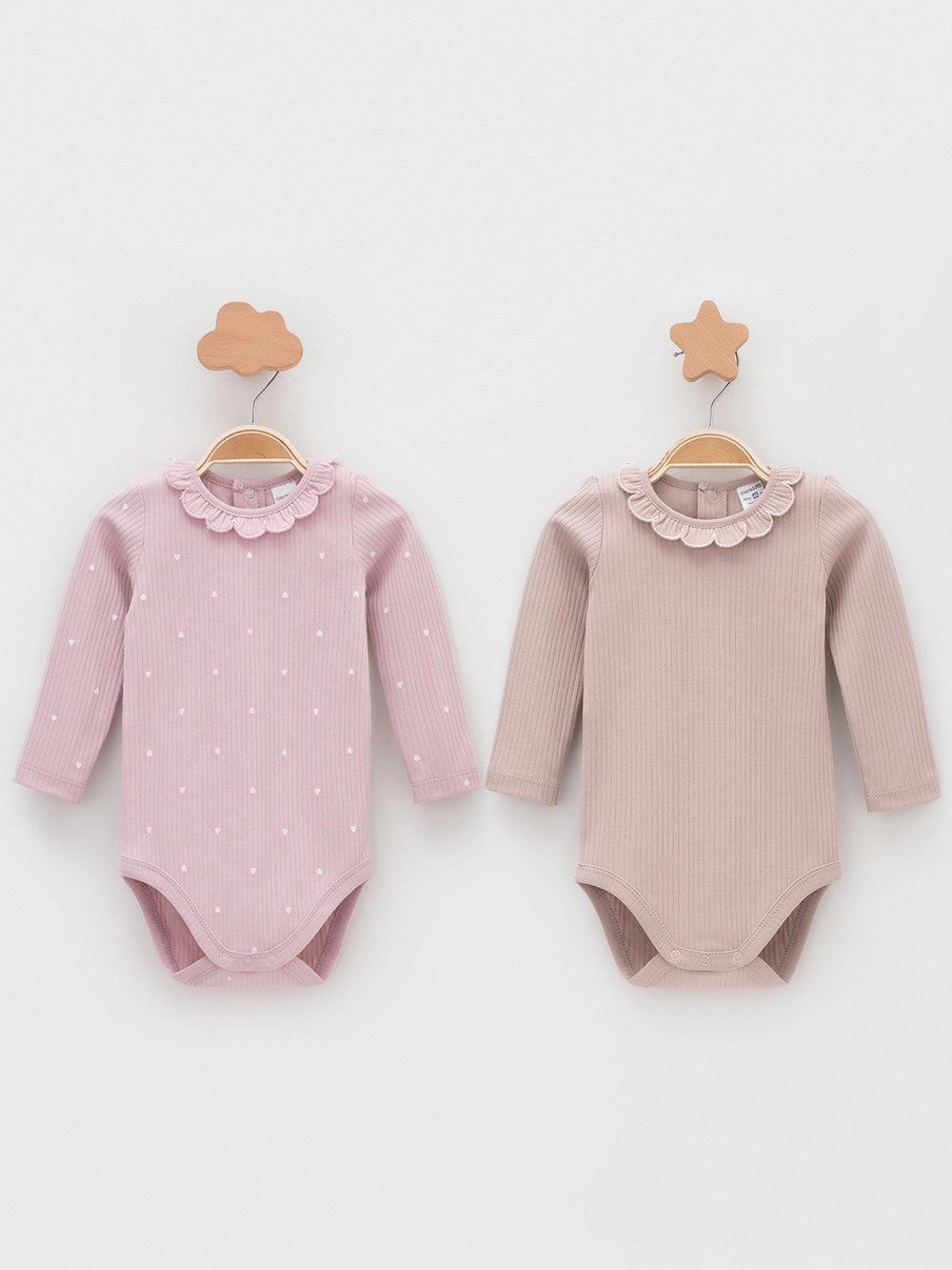 Боди для новорождённых из мягкого эластичного трикотажа, произведённого из натурального хлопка. В упаковке 2 штуки. Застёгиваются на кнопки на спинке и по низу изделий. Все трикотажные полотна производятся в соответствии с нормами швейцарского сертификата ЭкоТекс.