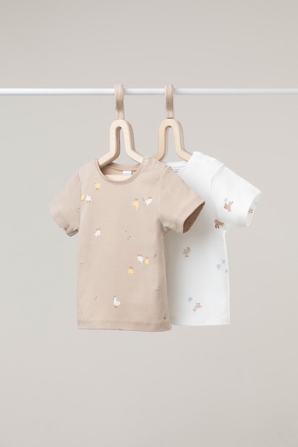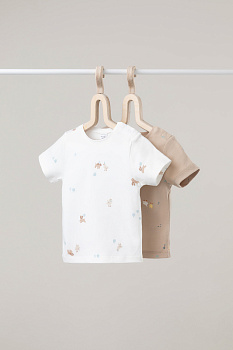 Футболки для мальчика из высококачественного трикотажа, произведённого из натурального хлопка. В упаковке 2 штуки. Для удобства на плече застёжка на кнопки. Оригинальная набивка выполнена из стойких гипоаллергенных текстильных красителей. Все трикотажные полотна производятся в соответствии с нормами Швейцарского сертификата ЭкоТекс.