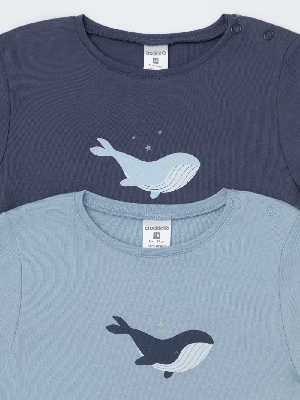 Футболки для мальчика из высококачественного трикотажа супрем, произведённого из натурального хлопка. В упаковке 2 штуки. Для удобства на плече застёжка на кнопки. Все трикотажные полотна производятся в соответствии с нормами Швейцарского сертификата ЭкоТекс.