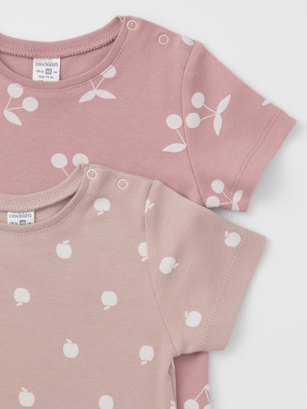 Футболки для девочки из высококачественного трикотажа интерлок. В упаковке 2 штуки. Для удобства на плече застёжка на кнопки. Оригинальная набивка выполнена из стойких гипоаллергенных текстильных красителей. Все трикотажные полотна производятся в соответствии с нормами швейцарского сертификата ЭкоТекс.