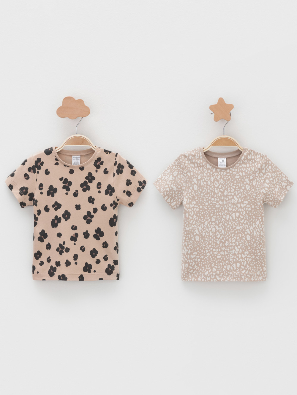 Футболки для девочки из высококачественного трикотажа интерлок. В упаковке 2 штуки. Для удобства на плече застёжка на кнопки. Оригинальная набивка выполнена из стойких гипоаллергенных текстильных красителей. Все трикотажные полотна производятся в соответствии с нормами швейцарского сертификата ЭкоТекс.