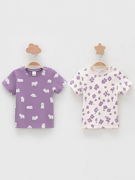 Футболки для девочки из высококачественного трикотажа интерлок. В упаковке 2 штуки. Для удобства на плече застёжка на кнопки. Оригинальная набивка выполнена из стойких гипоаллергенных текстильных красителей. Все трикотажные полотна производятся в соответствии с нормами швейцарского сертификата ЭкоТекс.