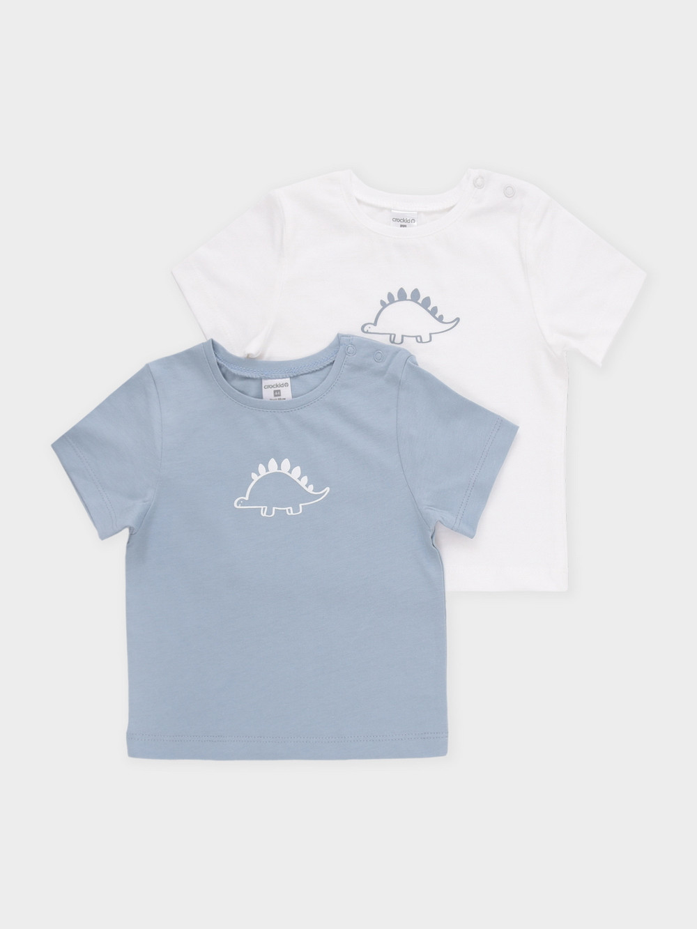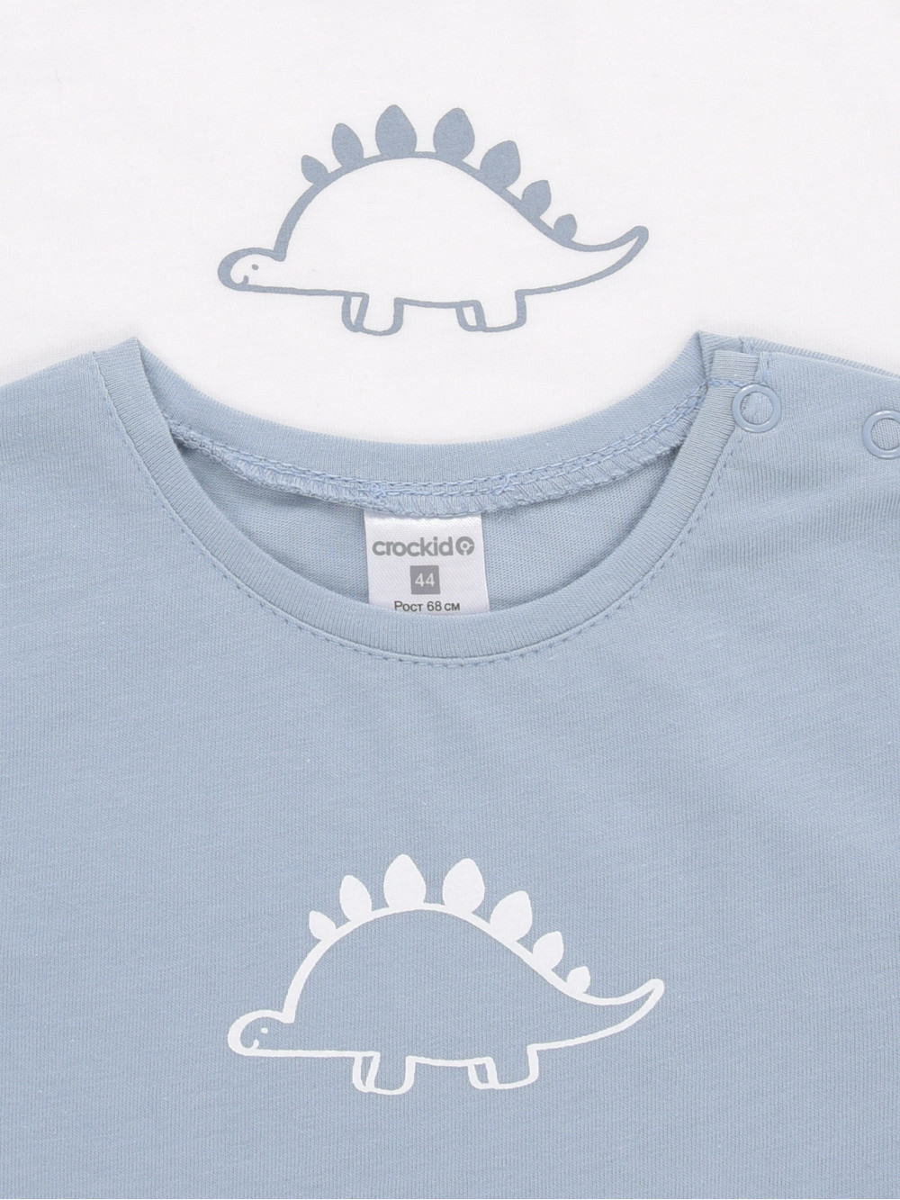 Футболки для мальчика из гладкого трикотажа супрем. В составе 100% натуральный хлопок высокого качества. В упаковке 2 штуки. Для удобства на плече застёжка на кнопки. Оригинальный принт выполнен из стойких гипоаллергенных текстильных красителей. Все трикотажные полотна производятся в соответствии с нормами швейцарского сертификата ЭкоТекс.