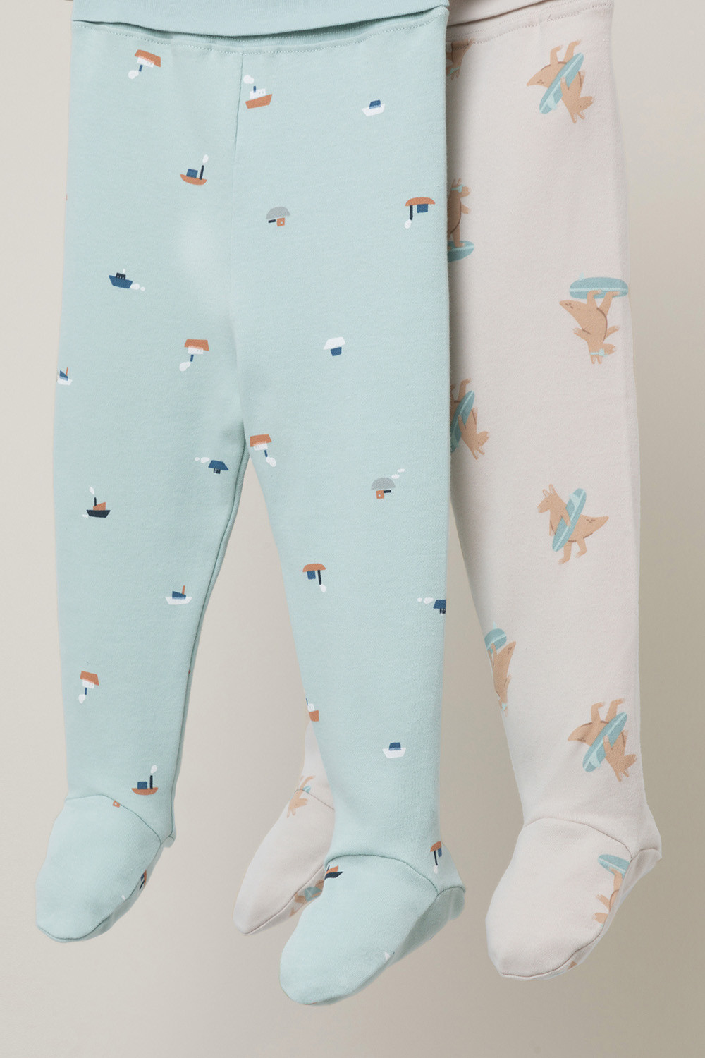 Ползунки для новорождённых из мягкого эластичного трикотажа интерлок, произведённого из натурального хлопка. В упаковке 2 штуки. Пояс на резинке. Оригинальная набивка выполнена из стойких гипоаллергенных текстильных красителей. Все трикотажные полотна производятся в соответствии с нормами Швейцарского сертификата ЭкоТекс.
