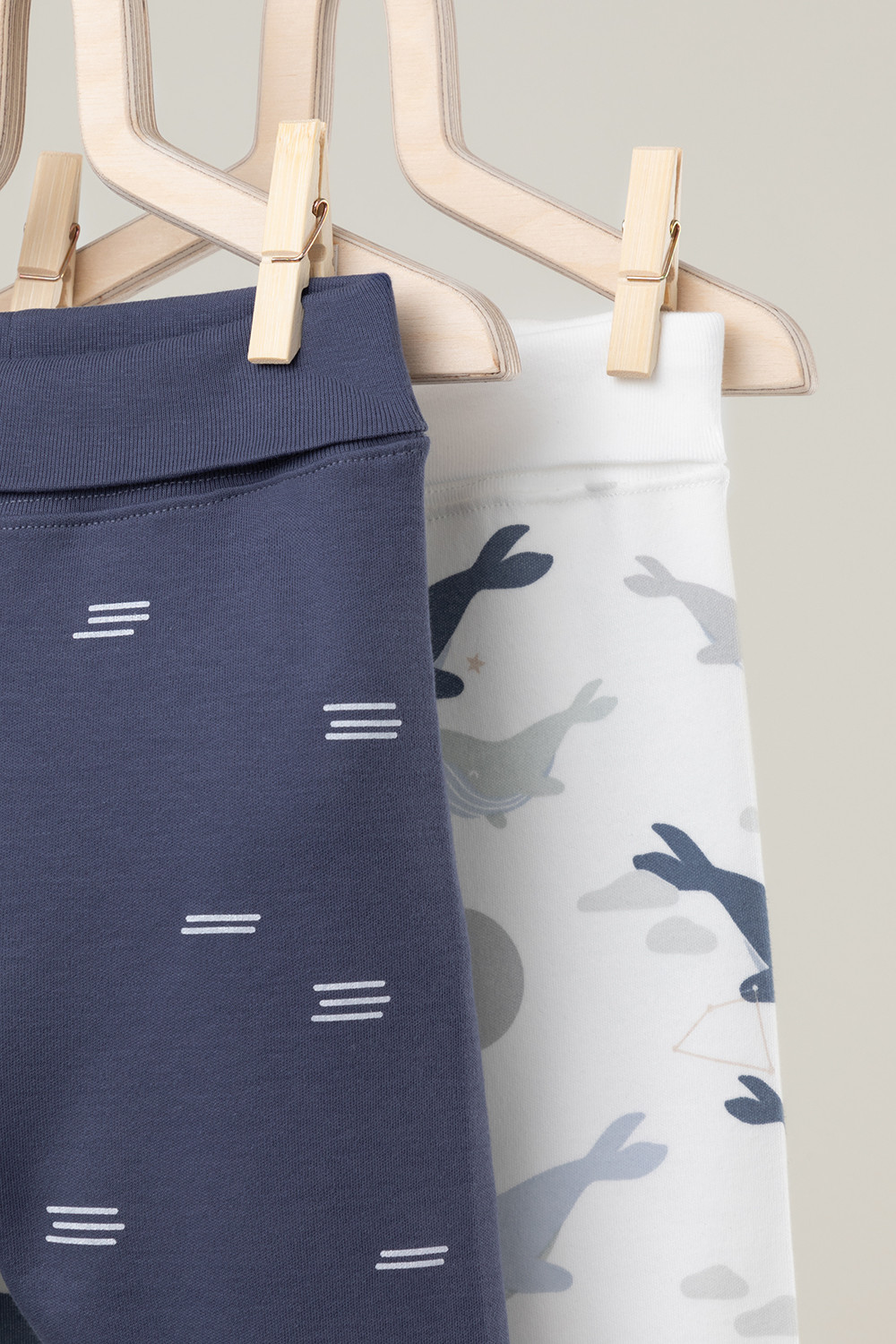 Ползунки для новорождённых из мягкого эластичного трикотажа интерлок, произведённого из натурального хлопка. В упаковке 2 штуки. Пояс на резинке. Оригинальная набивка выполнена из стойких гипоаллергенных текстильных красителей. Все трикотажные полотна производятся в соответствии с нормами Швейцарского сертификата ЭкоТекс.