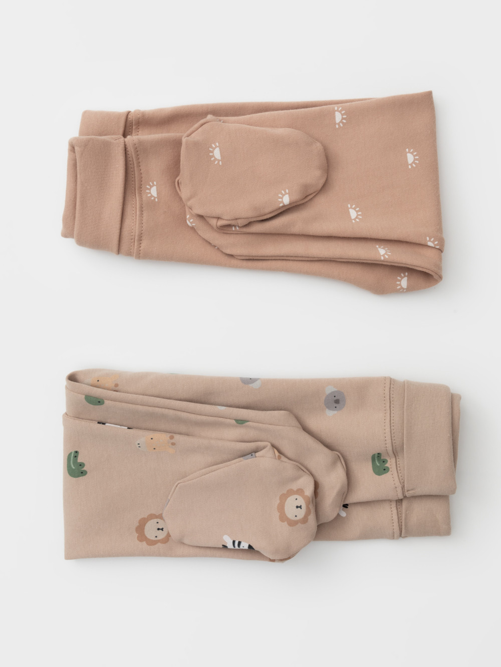 Ползунки для новорождённых из мягкого эластичного трикотажа интерлок, произведённого из натурального хлопка. В упаковке 2 штуки. Пояс на резинке. Оригинальная набивка выполнена из стойких гипоаллергенных текстильных красителей. Все трикотажные полотна производятся в соответствии с нормами Швейцарского сертификата ЭкоТекс.