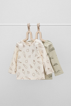 Джемпер в упаковке 2 шт для новорожденных из мягкого эластичного трикотажа - рибаны, произведенного из натурального хлопка. У изделия эластичные манжеты, застежка на плече на кнопки. Оригинальная набивка выполнена из стойких, гипоаллергенных текстильных красителей. Все трикотажные полотна производятся в соответсвии с нормами Швейцарского сертификата ЭкоТекс.