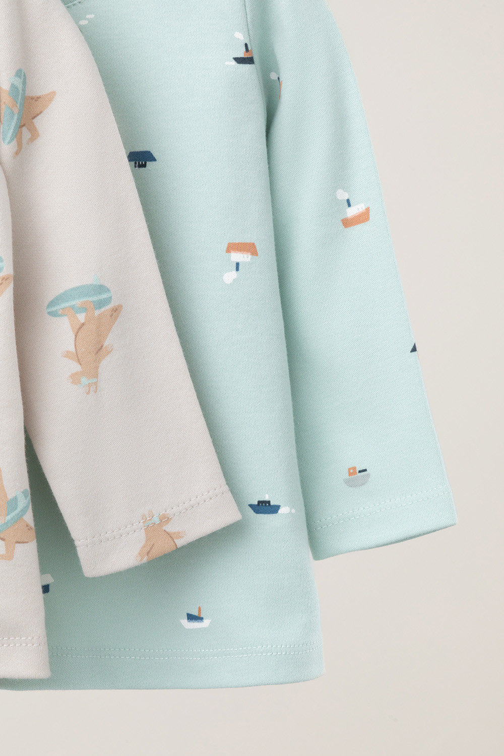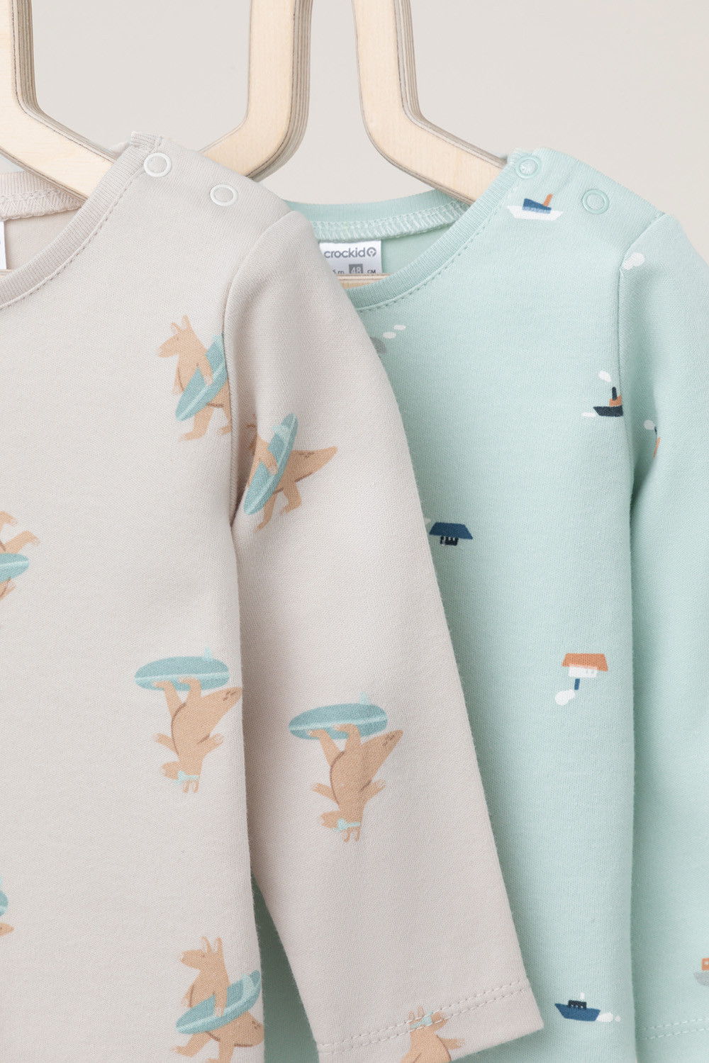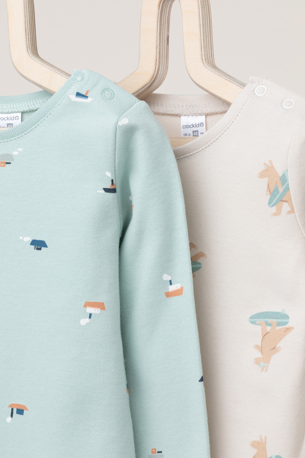 Джемперы лонгсливы для новорождённых из мягкого эластичного трикотажа интерлок, произведённого из натурального хлопка. В упаковке 2 штуки. Застёгиваются на плече на кнопки. Оригинальная набивка выполнена из стойких гипоаллергенных текстильных красителей. Все трикотажные полотна производятся в соответствии с нормами Швейцарского сертификата ЭкоТекс.