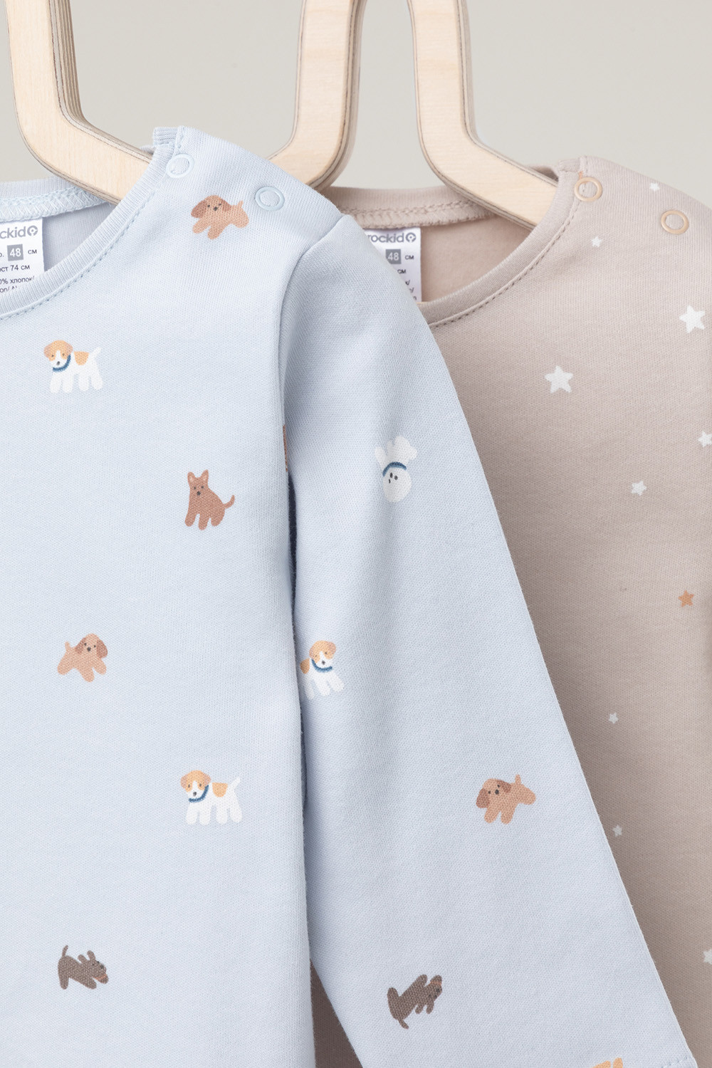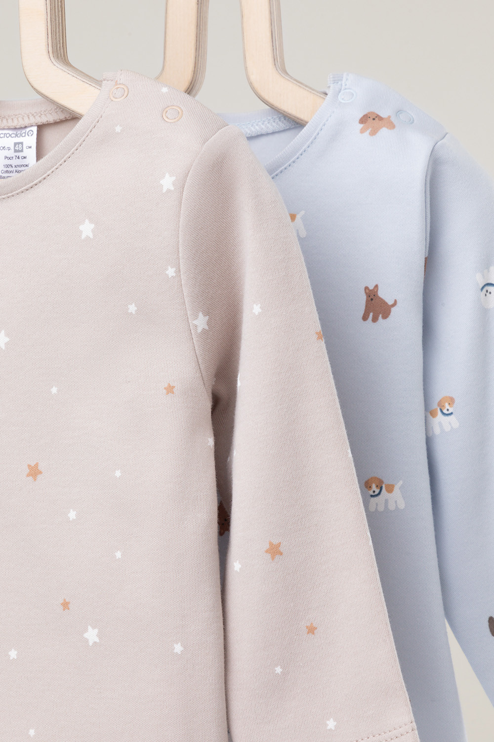 Джемперы лонгсливы для новорождённых из мягкого эластичного трикотажа интерлок, произведённого из натурального хлопка. В упаковке 2 штуки. Застёгиваются на плече на кнопки. Оригинальная набивка выполнена из стойких гипоаллергенных текстильных красителей. Все трикотажные полотна производятся в соответствии с нормами Швейцарского сертификата ЭкоТекс.
