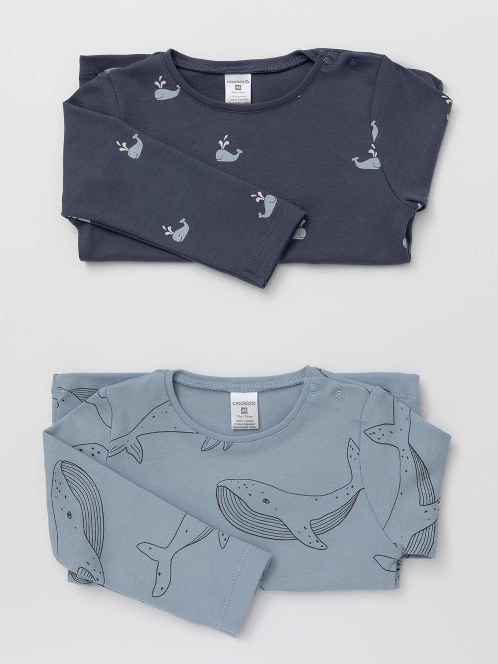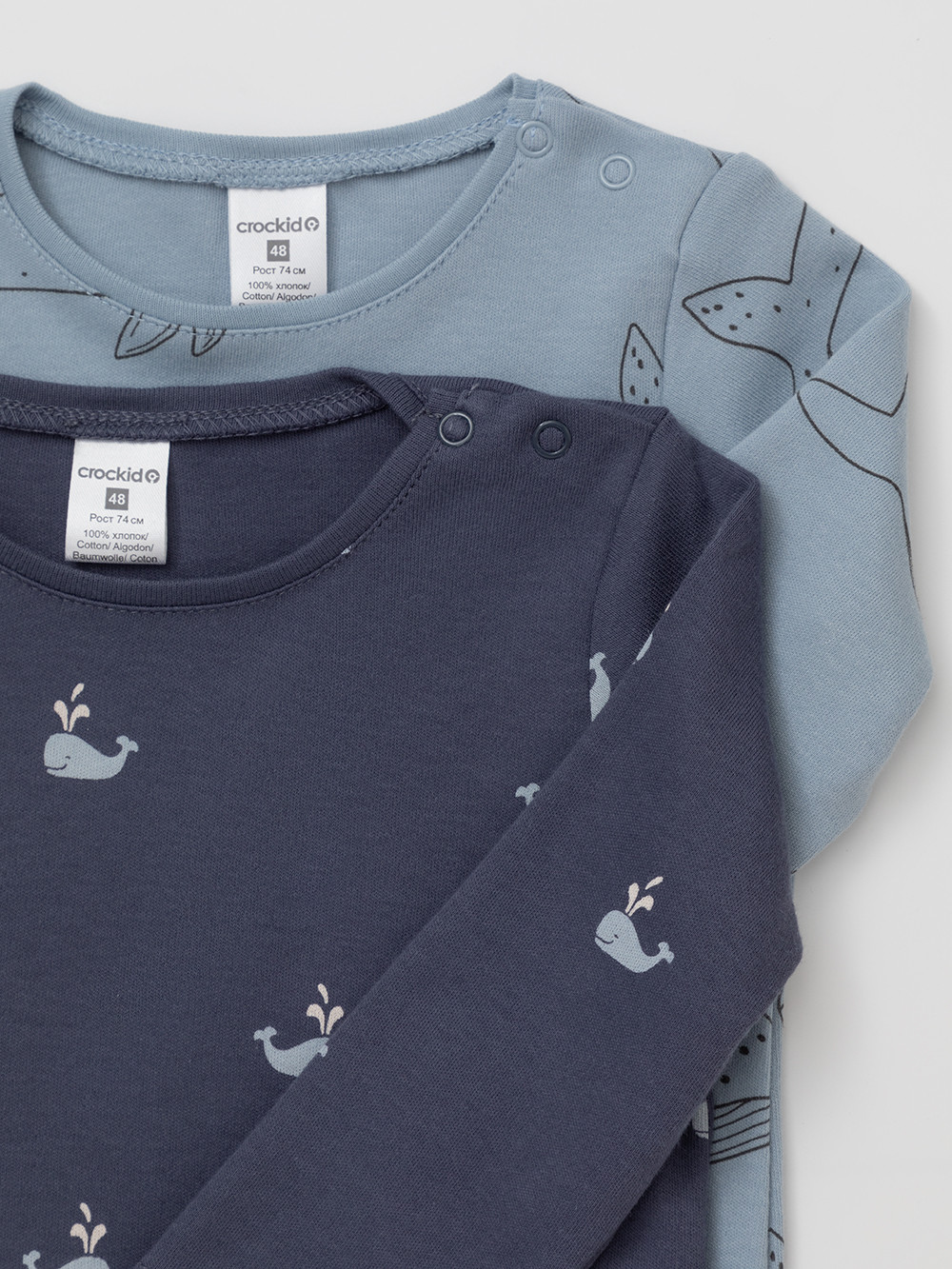 Джемперы лонгсливы для новорождённых из мягкого эластичного трикотажа интерлок, произведённого из натурального хлопка. В упаковке 2 штуки. Застёгиваются на плече на кнопки. Оригинальная набивка выполнена из стойких гипоаллергенных текстильных красителей. Все трикотажные полотна производятся в соответствии с нормами Швейцарского сертификата ЭкоТекс.