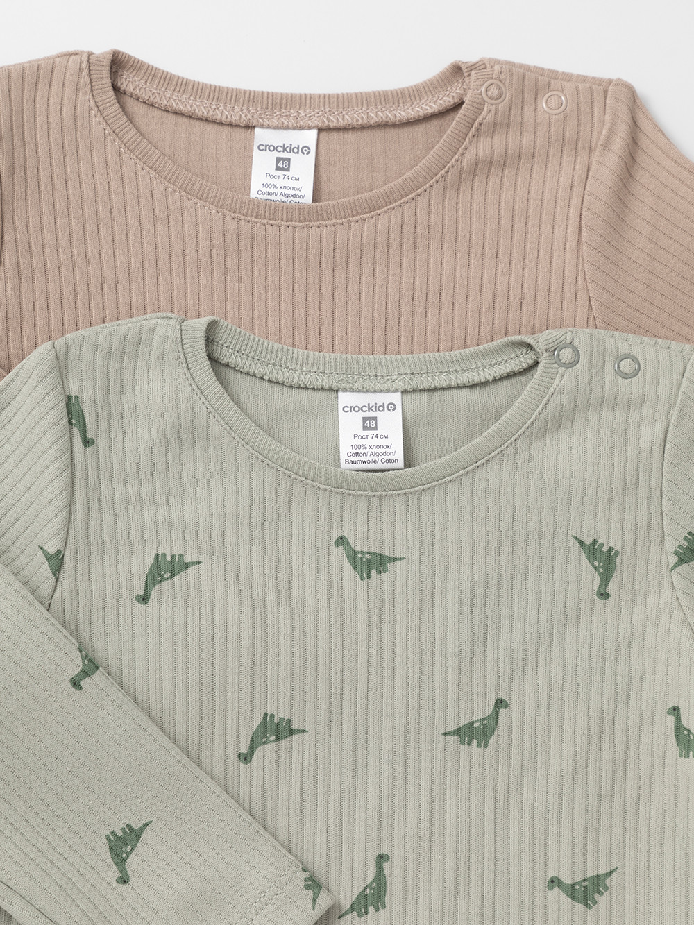 Джемперы лонгсливы для новорождённых из мягкого эластичного трикотажа, произведённого из натурального хлопка. В упаковке 2 штуки. Застёгиваются на плече на кнопки. Все трикотажные полотна производятся в соответствии с нормами швейцарского сертификата ЭкоТекс.