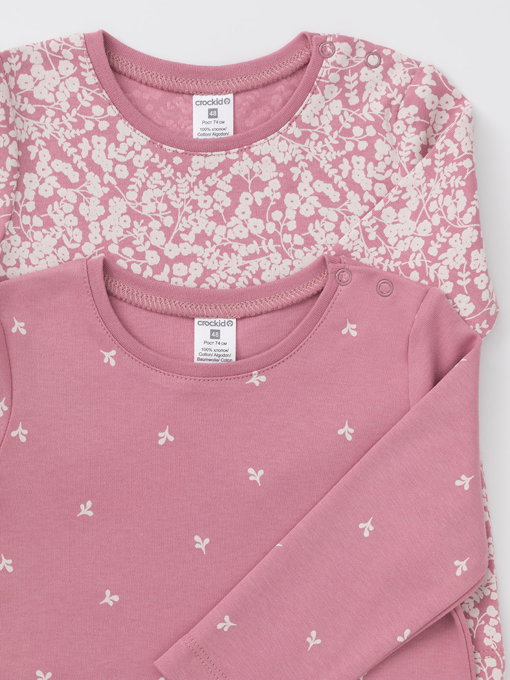 Джемперы лонгсливы для новорождённых из мягкого эластичного трикотажа интерлок, произведённого из натурального хлопка. В упаковке 2 штуки. Застёгиваются на плече на кнопки. Оригинальная набивка выполнена из стойких гипоаллергенных текстильных красителей. Все трикотажные полотна производятся в соответствии с нормами швейцарского сертификата ЭкоТекс.