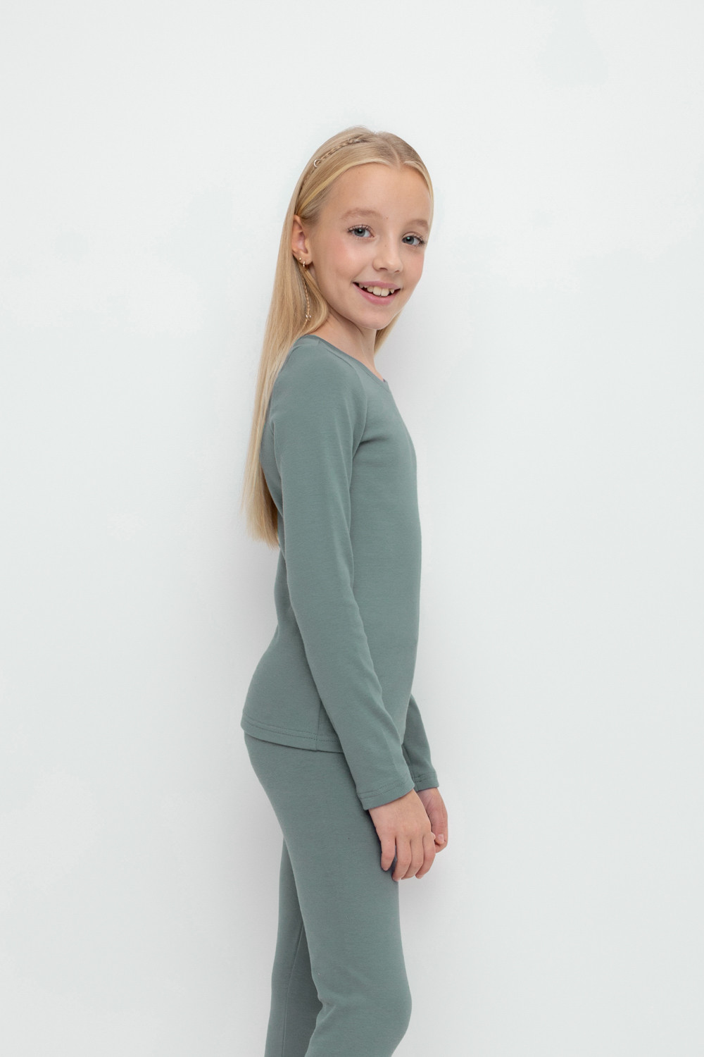 Однотонный джемпер с длинными рукавами. Сшит из высококачественной эластичной рибаны с начёсом. Эластан в составе позволяет изделию быть более эластичным и дольше сохранять опрятный внешний вид. Обтачка горловины выполнена из основного материала.
