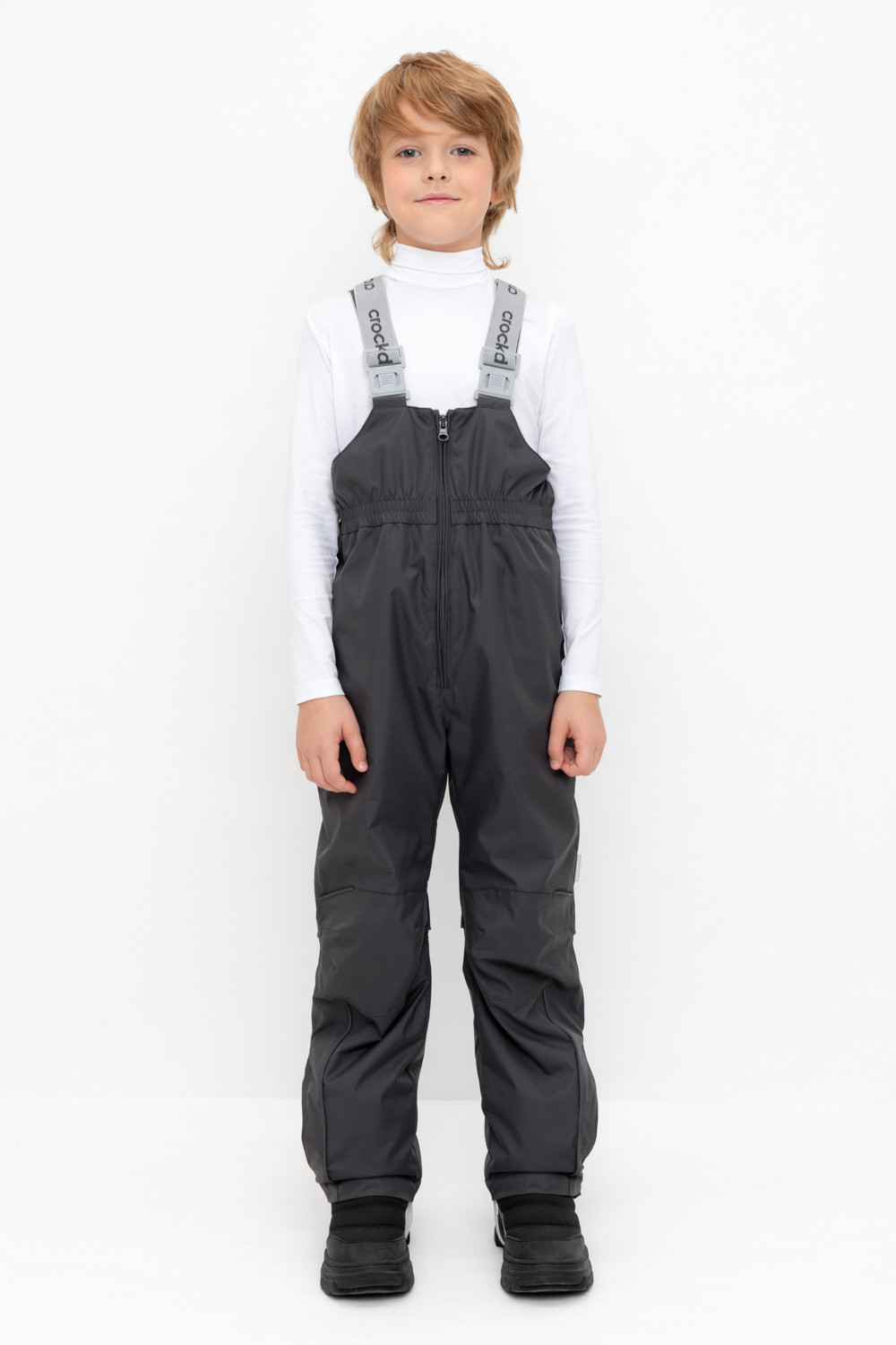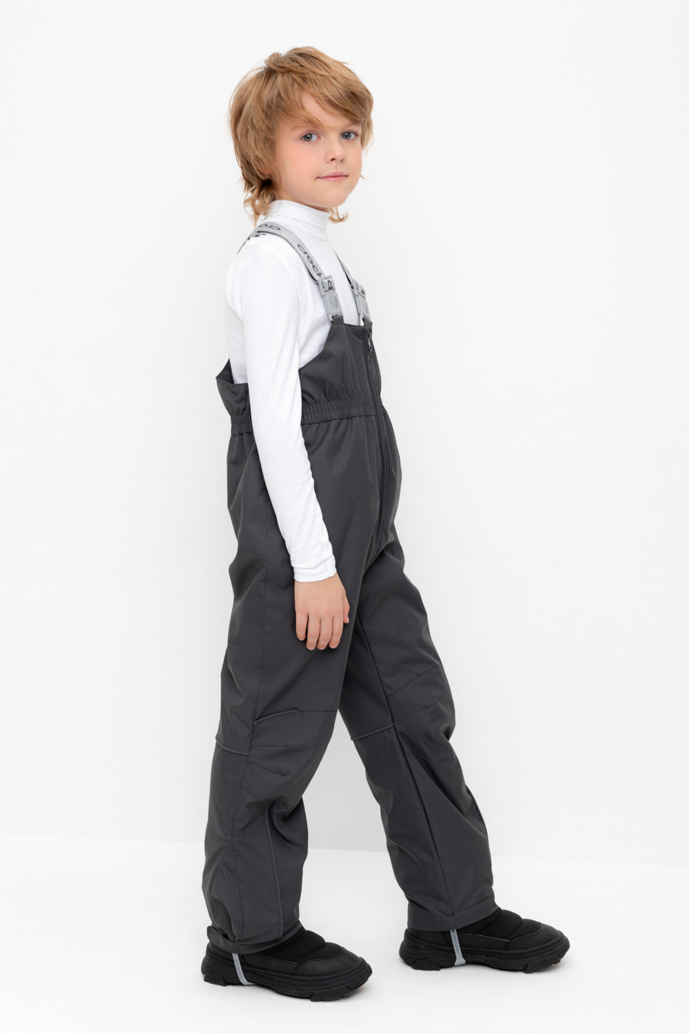 Демисезонный полукомбинезон детский с утеплителем 60г/м2. Выполнен из мембранной ткани с дополнительной тефлоновой обработкой. Данный вид обработки предохраняет изделие от загрязнения и лучше отводит влагу. Подклад из 100% полиэстра. Эластичные лямки для удобства регулируются по длине. Область коленей дополнительно усилена деталями из основной ткани. Низ на резинке, регулируется по ширине при помощи липучки. Для фиксации полукомбинезона используются съемные силиконовые штрипки. Во всех изделиях верхнего ассортимента для безопасности ребенка предусмотрены светоотражающие элементы.