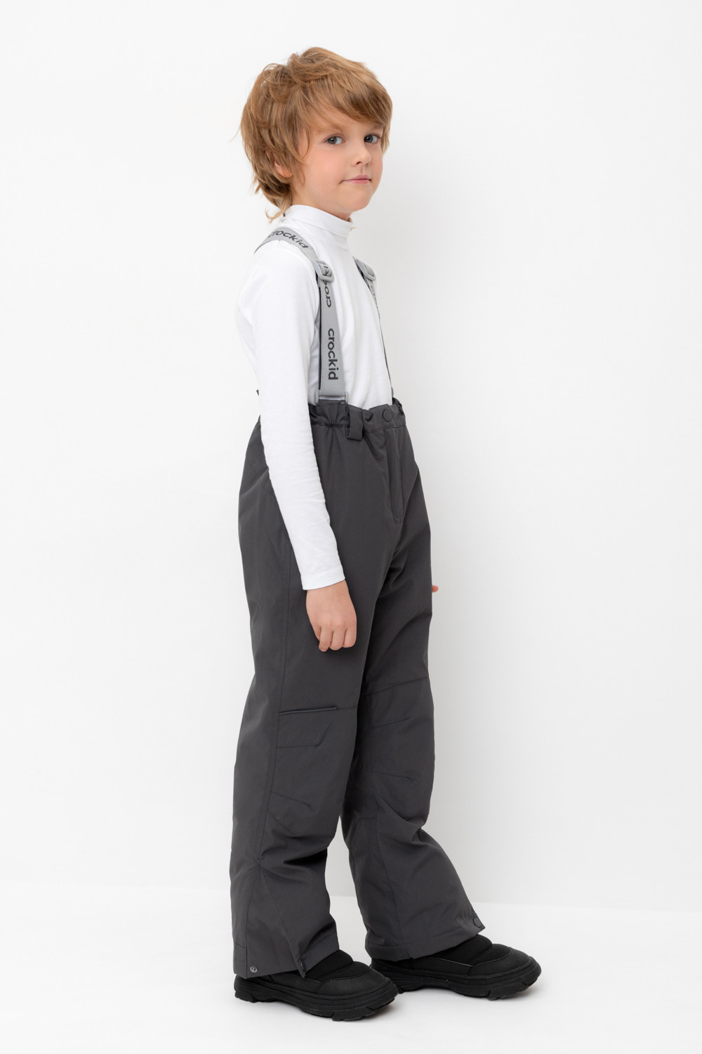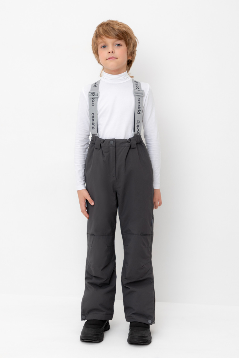 Демисезонные брюки детские с утеплителем 60г/м2. Выполнен из мембранной ткани с дополнительной тефлоновой обработкой. Данный вид обработки предохраняет изделие от загрязнения и лучше отводит влагу. Подклад из 100% полиэстра. Эластичные лямки для удобства регулируются по длине. Область коленей и низ брюк дополнительно усилены деталями из основной ткани. Ширина низа брюк регулируется при помощи кнопки. Во всех изделиях верхнего ассортимента для безопасности ребенка предусмотрены светоотражающие элементы.