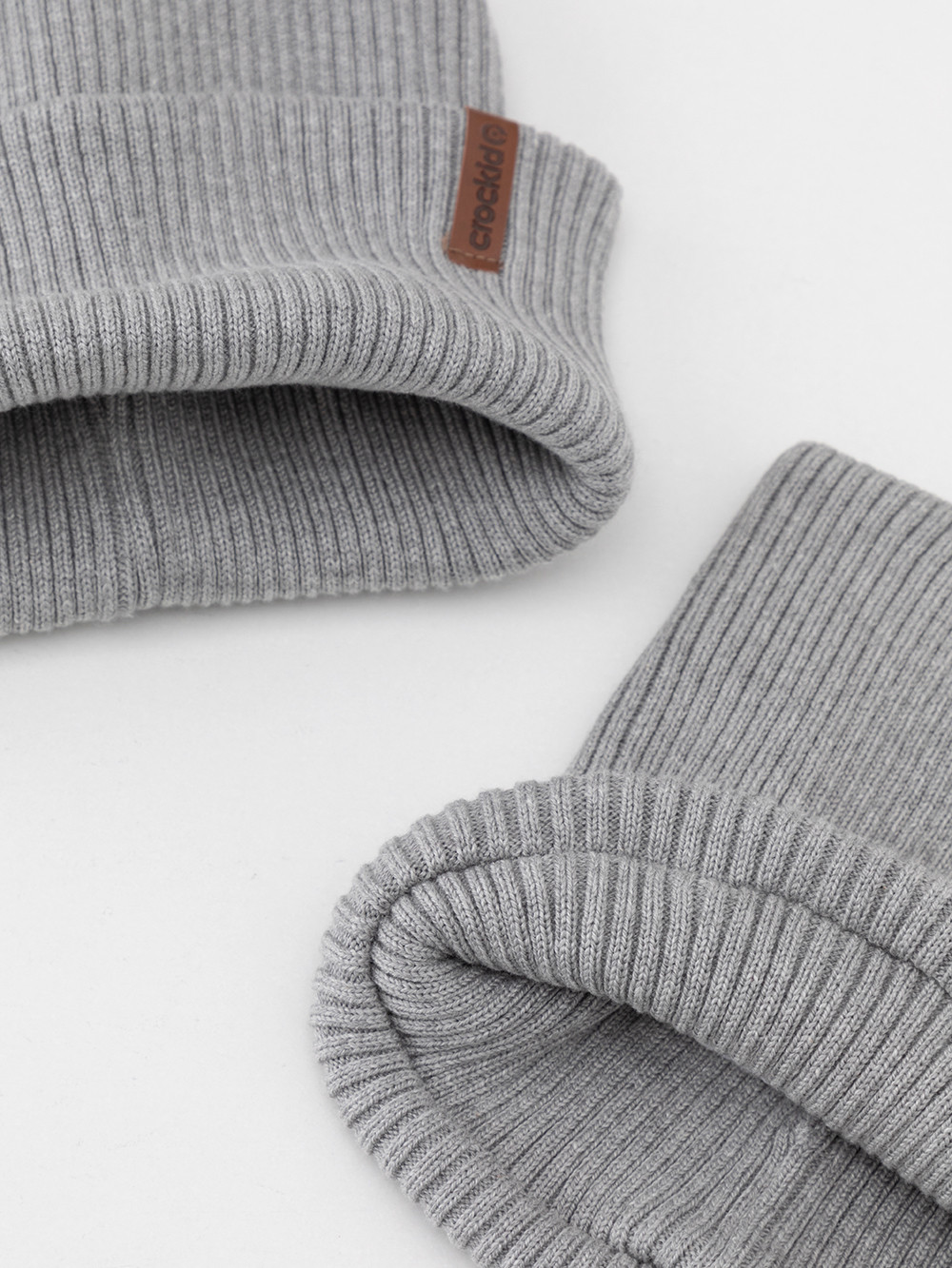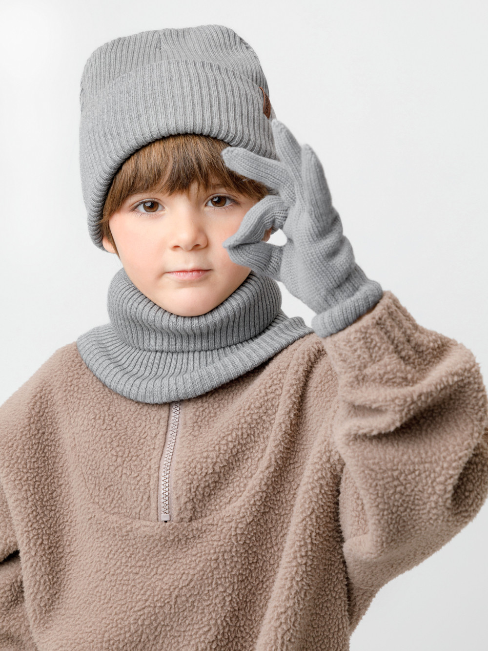 Комплект демисезонный из шапки с отворотом и снуда. Связан из высококачественного хлопка и выполнен переплетением ластик. Комфортно прилегает, обеспечивая защиту от холода и хороший теплообмен. Изделия хорошо переносят многократные стирки, сохраняя цвет и форму.