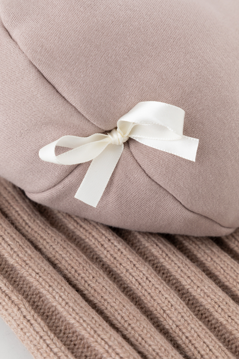шапка: 70% акрил, 30% шерсть; подклад: 100% хлопок; утеплитель: 100% полиэстер; снуд: 70% акрил, 30% шерсть