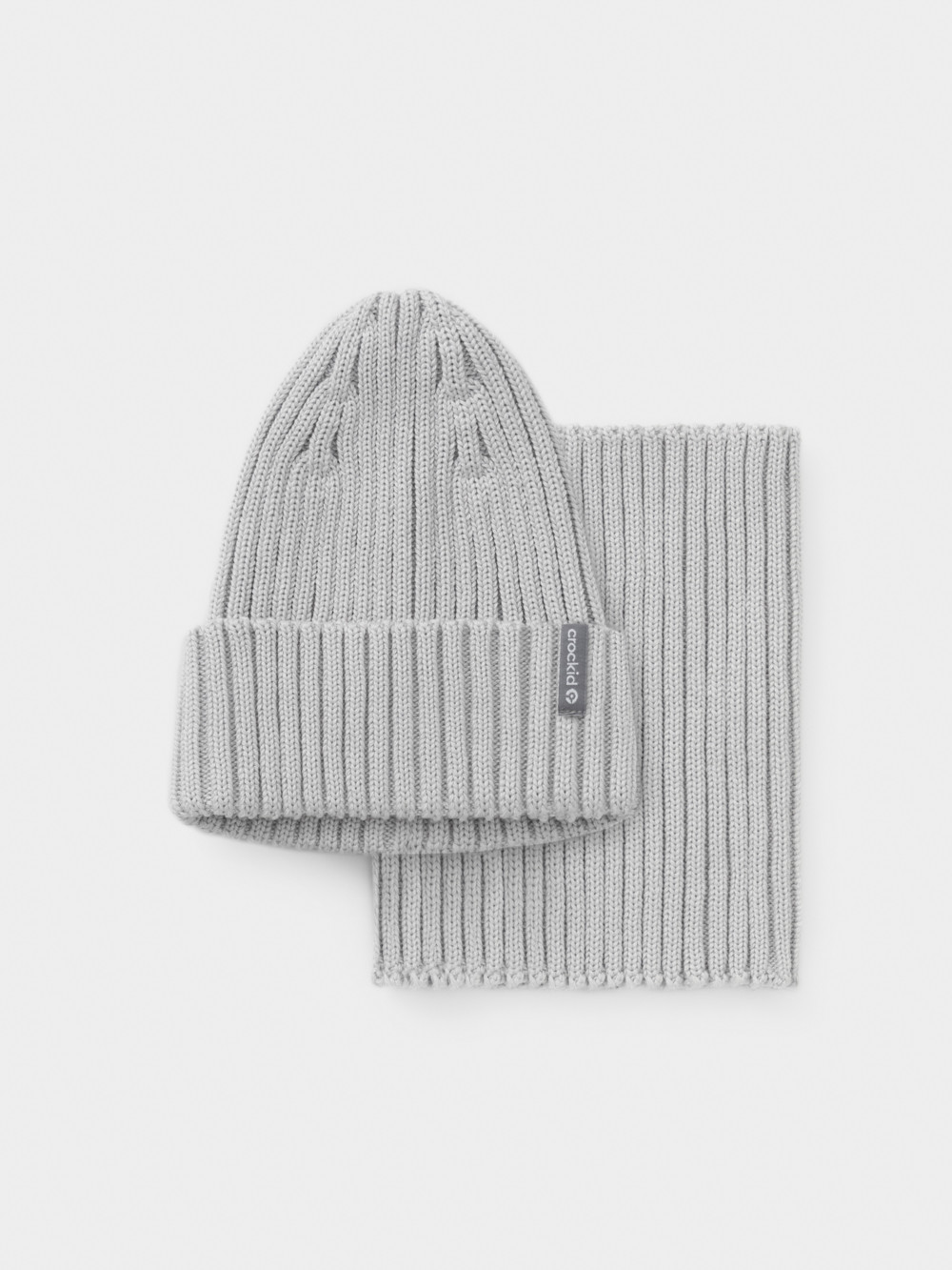 Комплект демисезонный из шапки с отворотом и снуда. Изготовлен из высококачественной пряжи из хлопка и акрила. Комфортно прилегает, обеспечивая защиту от холода и хороший теплообмен. Изделия хорошо переносят многократные стирки, сохраняя цвет и форму.