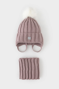 Комплект детский: шапка и снуд из полушерсти. Шапка на завязках с синтепоновым утеплителем. Подклад из натурального хлопка. Полностью закрывает голову, уши и шею, защищая ребёнка от холодного воздуха и ветра. На макушке помпон. Снуд с отворотом. Изделие сохраняет форму и стойкий цвет после многочисленных стирок.