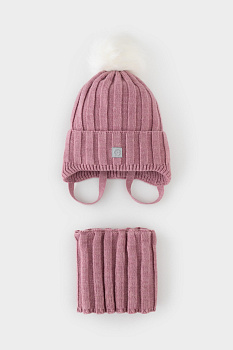 Комплект детский: шапка и снуд из полушерсти. Шапка на завязках с синтепоновым утеплителем. Подклад из натурального хлопка. Полностью закрывает голову, уши и шею, защищая ребёнка от холодного воздуха и ветра. На макушке помпон. Снуд с отворотом. Изделие сохраняет форму и стойкий цвет после многочисленных стирок.