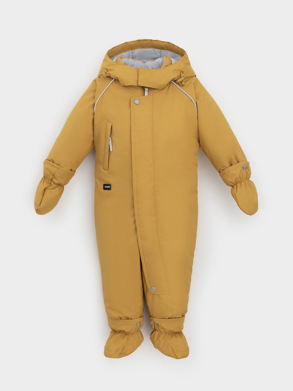 Зимний комбинезон ясельный с утеплителем SEE®: 250 г/м2. Выполнен из мембранной ткани с дополнительной тефлоновой обработкой, которая предохраняет изделие от загрязнений и отталкивает влагу. Подклад выполнен из 100% хлопка. Комбинезон застёгивается на молнию и внешнюю планку на липучках, предусмотрена защита подбородка. Несъёмный капюшон имеет эластичную утяжку со стопперами. Резинка по спинке для лучшего прилегания. На груди карман на молнии. По рукавам и низу изделия эластичные манжеты, на ножках отстёгивающиеся силиконовые штрипки. В размерах 74-80 и 80-86 в комплекте идут рукавицы и пинетки. Во всех изделиях верхнего ассортимента для безопасности ребёнка предусмотрены светоотражающие элементы.
