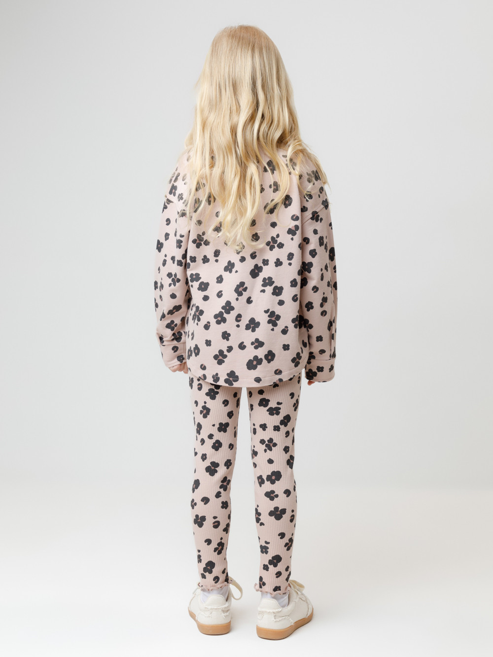 Лосины для девочки из эластичного трикотажа в рубчик. Оригинальный рисунок выполнен из стойких текстильных гипоаллергенных красителей. Изделие сохраняет цвет и форму после многократных стирок. Все трикотажные полотна производятся в соответствии с нормами швейцарского сертификата ЭкоТекс.