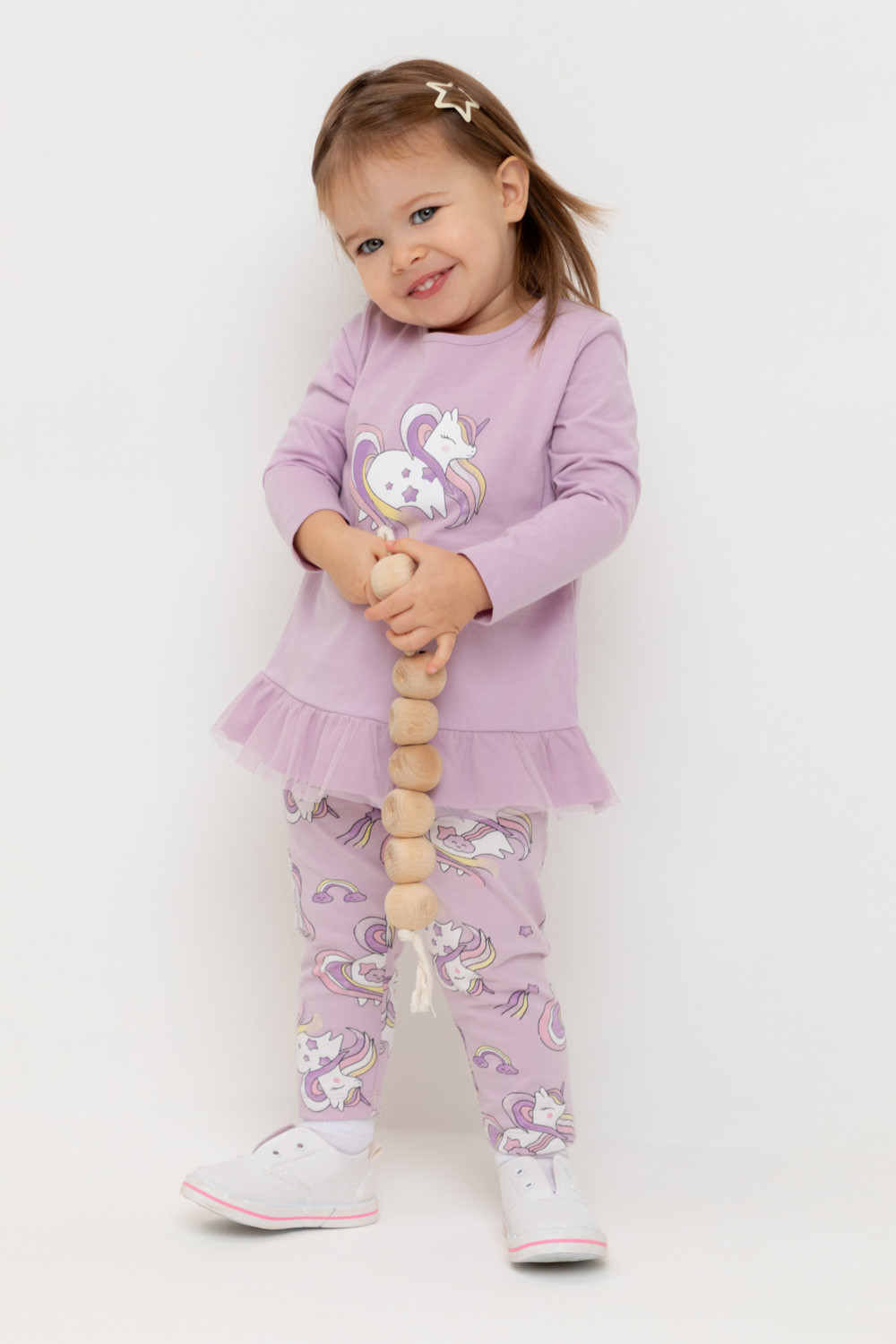 Лосины для девочки из эластичного набивного трикотажного полотна.