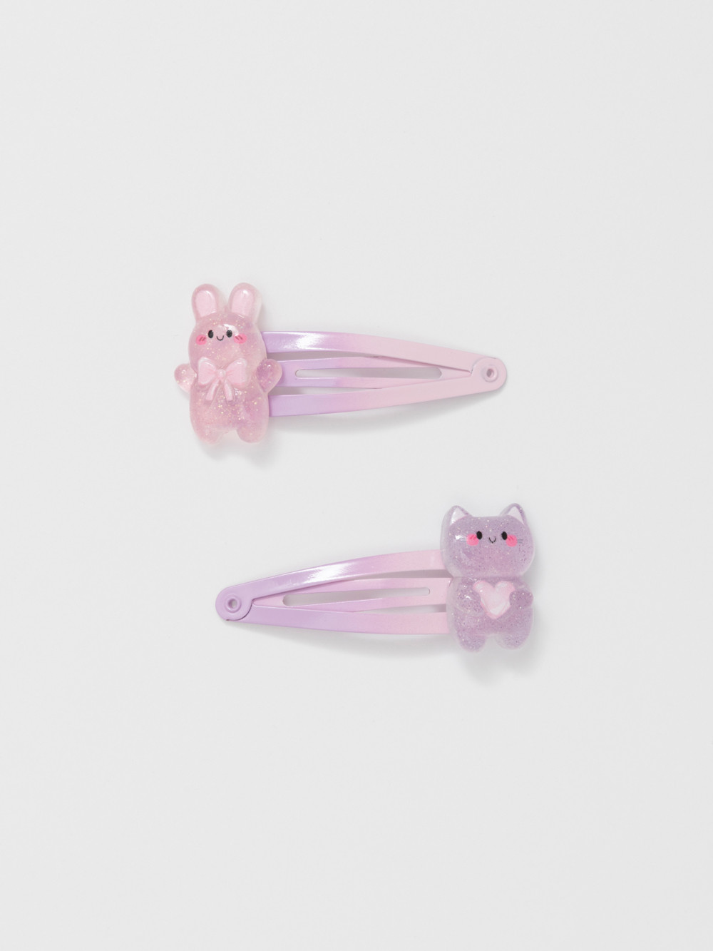 Детские заколки для волос с украшением из эпоксидной смолы в форме питомцев. Предназначены для детей старше 3-х лет, содержат мелкие детали. В наборе 2 штуки.